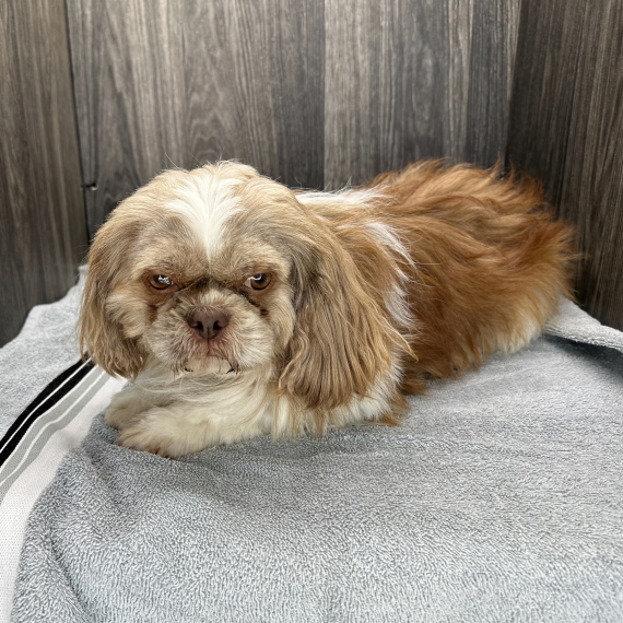 Hi, I'm Turbo! I'm a 14-week-old male Shih Tzu with a beautiful black & white coat, born on March 8, which makes me a Pisces pup. I am ready now to plan my trip to my forever family. Once I reach my adult size, I'm expected to weigh between 12–14 lbs. I'm AKC registered. I may nibble your shoelaces, but I'll fill your life with love.
